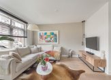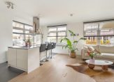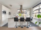De gezellige woonkamer met open keuken zijn aan de voorzijde van het appartement gelegen. De keuken is voorzien van een kastenwand met inbouwapparatuur zoals een koelkast, vriezer, combi-oven/magnetron, koffiemachine en vaatwasmachine. Het kookeiland met bar is voorzien van een 5-pits inductiekookplaat, RVS afzuigkap en een kokend waterkraan. Door het extra zijraam komt er veel licht naar binnen en heb je een leuke uitkijk over de Wilhelminastraat.