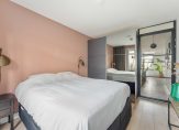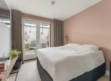 Middels een mooie stalen deur is de ruime slaapkamer is aan de achterzijde bereikbaar, met openslaande deuren naar de gezellige tuin op het westen (met achterom) waar je heerlijk van de zon kunt genieten.