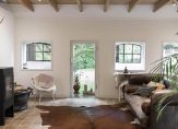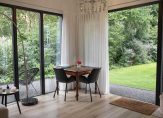 Het andere deel is ingericht als comfortabel gastenverblijf. Met een woonkamer, slaapkamer, badkamer en pantry is dit de perfecte plek voor logés. De ruimte is volledig geïsoleerd, voorzien van een airco-unit (koelen/verwarmen) en biedt prachtig uitzicht op de tuin, het natuurgebied achter het erf en de kasteelheuvel. De hier gebruikte materialen zijn hoogwaardig en in uitvoering prachtig op elkaar afgestemd. Kwaliteit, duurzaamheid en schoonheid gaan hier samen. De gasten ervaren hier een aangename, luxe ambiance die uitnodigt tot ontspannen overnachten. Momenteel in gebruik als succesvolle B&B.
