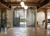 Links van de oprit bevindt zich de deel, die momenteel een zakelijke invulling heeft. Deze karakteristieke ruimte heeft een separate statige entree met aan beide zijden deuren, lichtinval van drie zijden, prachtige authentieke stalramen. De ruimte omarmt u en geeft een fijne sfeer. Een luxe keuken in een vrije opstelling met een prachtig werkblad, rondom voorzien van kastruimte. Natuurlijk een toiletruimte, speciaal voor dit gedeelte. Veelzijdig te gebruiken: als kantoor, praktijkruimte, atelier of trainingsruimte. Ook een invulling om hier gelijkvloers een aanvullende woonruimte of separate woonruimte te creëren is eenvoudig mogelijk. De houten balkenconstructie, travertin natuurstenen vloer geheel voorzien van vloerverwarming, de houtkachel en de balkenplafonds op verschillende hoogten zorgen voor een authentieke, warme uitstraling. Via een prachtig weggewerkte doorgang in de kastenwand bereikt u het voorhuis.