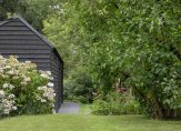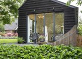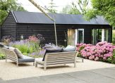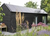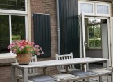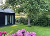 In 2024 is er een stijlvolle en imposante schuur gebouwd van circa 13.9 x 4 meter, geheel in de sfeer van een traditionele schuur. Met zwarte gevels, antracietkleurige kozijnen en zonnepanelen op het dak vormt dit een prachtig geheel.