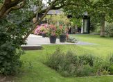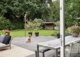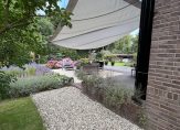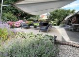Veel tuin rondom de woning en met de aanwezige terrassen is er altijd een zon locatie of schaduw locatie voor handen. Kleurrijke, zeer onderhoudsvriendelijke uitvoering zorgen dat er altijd wat moois te zien is en weinig onderhoud. Het grote terras aan de keuken heeft een zeer bijzondere elektrische overkapping. Deze kunt u met afstandsbediening laten uitrollen/oprollen en biedt bescherming tegen zon en regen. Een verfijnde techniek van hoog niveau van het Zwitserse merk Sunsquare, architectuur voor de schaduw.