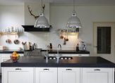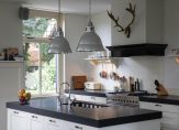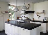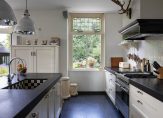 De keuken, van het exclusieve merk Lodder, is hoogwaardig ingericht met een groot kookeiland, ruime kastenwand en een lang kookgedeelte. Ook hier een hardstenen werkblad, bewerkt arduin. De spoelbak met tegeltjes en de stijlvolle details maken het tot een echte blikvanger. Alle benodigde apparatuur is ingebouwd, waaronder een groot luxe gasfornuis met bakplaat, dubbele oven en de zo geliefde Quooker.