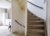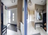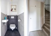 Aan de voorzijde is de entree van deze geheel verbouwde, vrijstaande woning. Achter de mooie voordeur, die aan de buitenzijde een antracietkleur heeft, is de ruime hal. Hier zijn de meterkast, de toiletruimte met fonteintje, de trapopgang en een ruime bergkast.