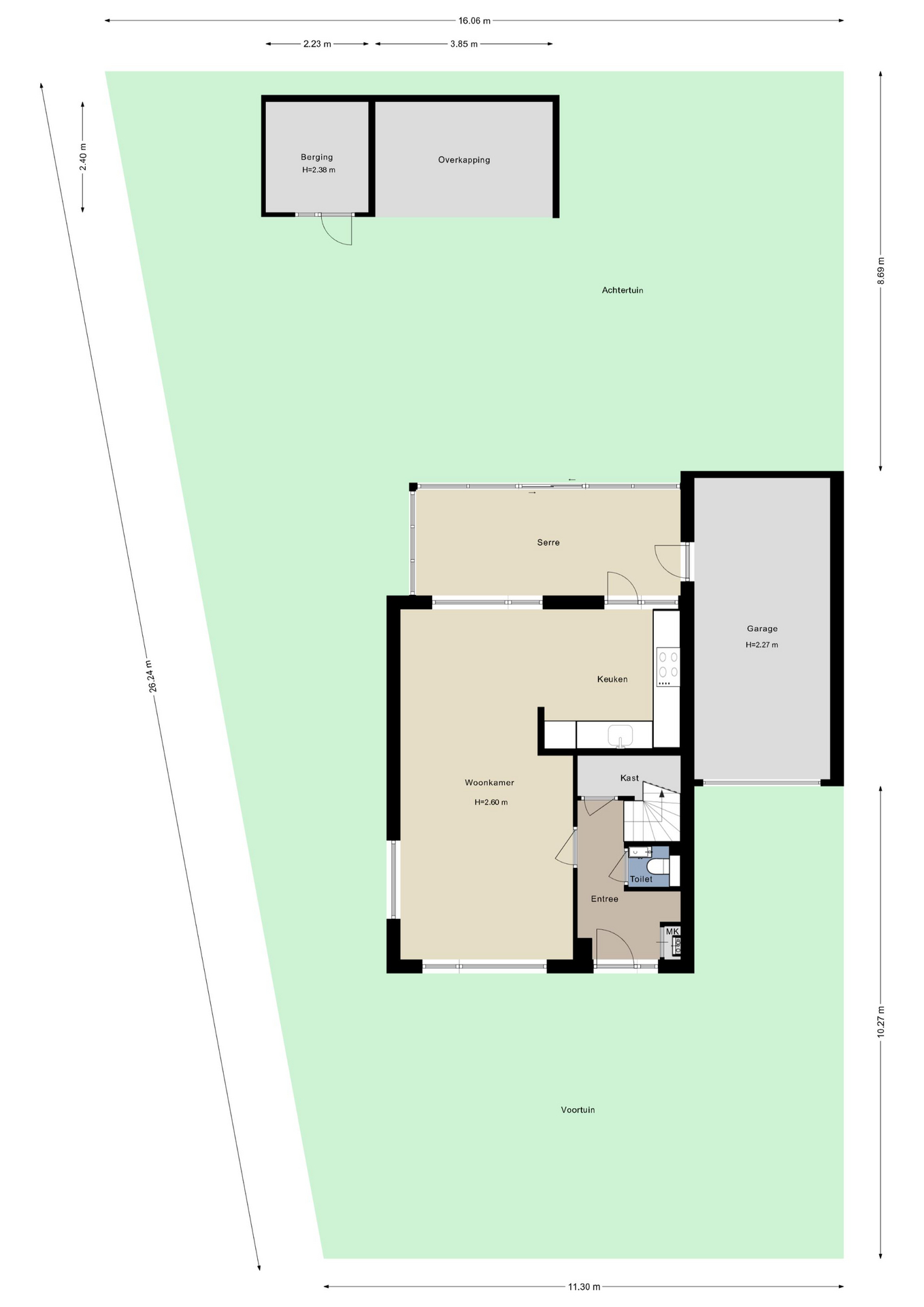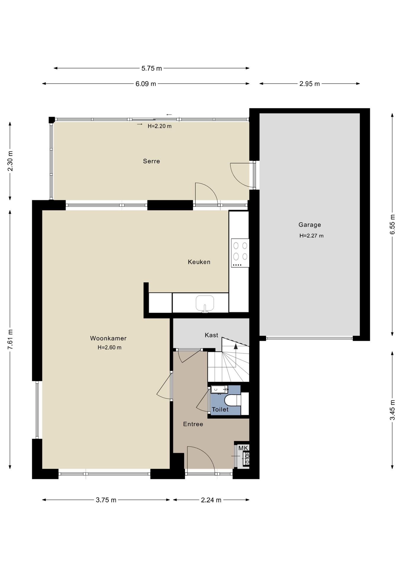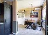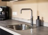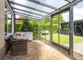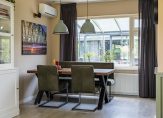 In de keuken staat een stijlvolle, zwarte hoekopstelling met een ingebouwde inductie kookplaat, afzuigkap, combi-oven, vaatwasser, Quooker en een koelkast. Vanaf hier loop je, met een hapje en een drankje lzo naar de serre, met schuifdeuren naar de tuin. De aangebouwde garage, te bereiken vanuit de serre, is voorzien van krachtstroom en een sectionaalpoort naar de oprit. Dit is de perfecte hobby-/klusruimte, maar kan ook worden gebruikt om de auto binnen te zetten.
