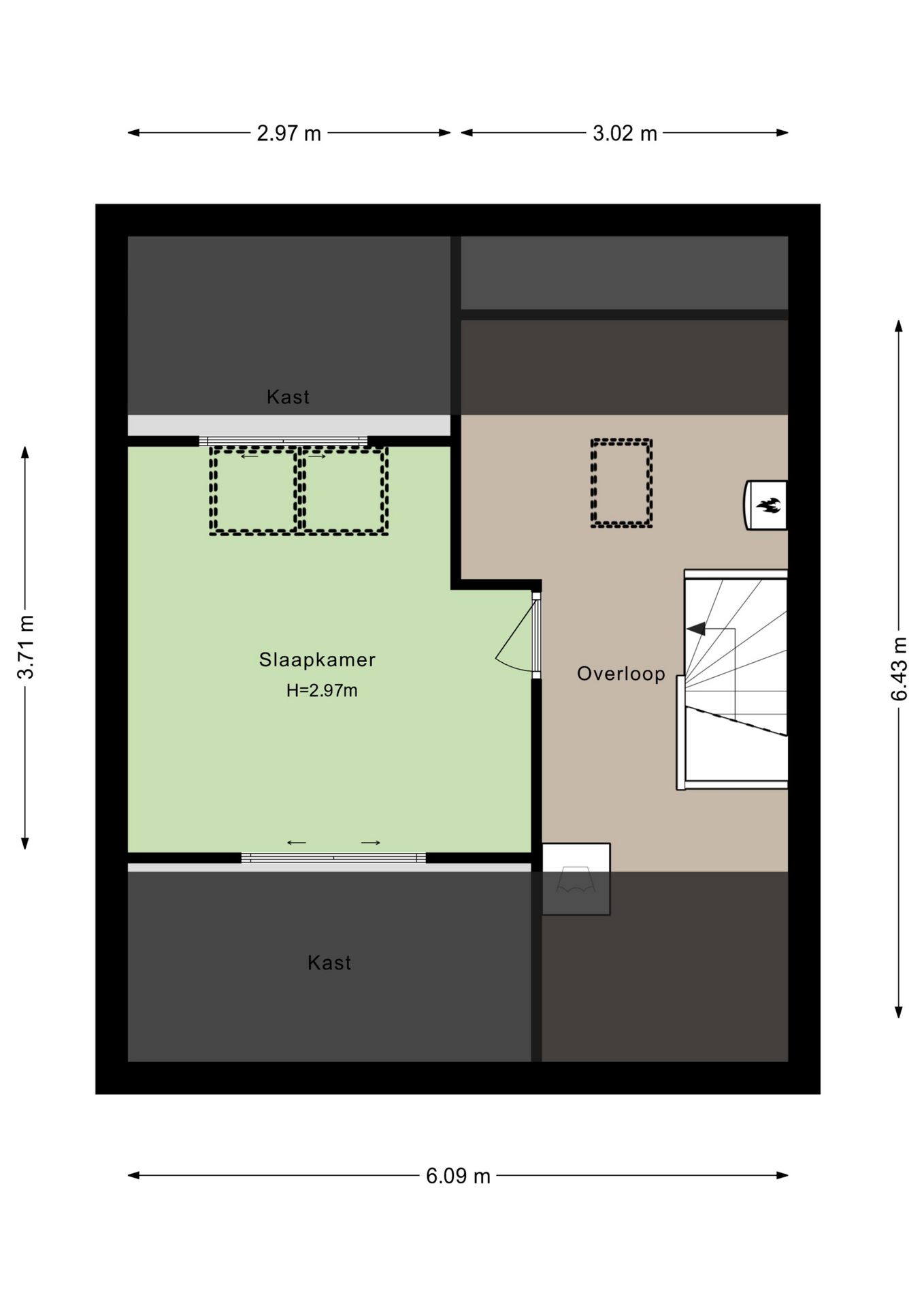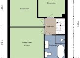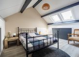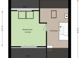 De vierde slaapkamer is op de tweede verdieping, met twee dakramen en diepe bergingen in de schuinten van het dak. Deze kamer heeft, net als de overloop, een nokhoogte van bijna 3 meter. Op de overloop, bij het dakraam, is een logeerplek gecreëerd. Een invulling als werk-/studeerplek kan ook, als de slaapkamers allemaal de beoogde functie krijgen.
