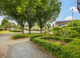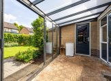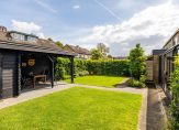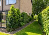 Deze vrijstaande woning wordt aan drie kanten omringd door een mooi aangelegde tuin, met de zijtuin op het westen en de achtertuin op het noorden. Je ziet groene hagen, gras en gevarieerde beplanting die samen een fraai geheel vormen. Het overdekte terras met berging is, net als de serre, een geliefde plek om buiten te zitten. De voortuin, met lage hagen, en de oprit maken het huis helemaal af.