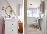 Wat vroeger de derde slaapkamer was, is verbouwd tot een badkamer met een ligbad en een wastafelmeubel. Aan de andere zijde van de overloop is de tweede badkamer, met een ruime douche en een toilet.