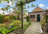 Dit superleuke huis wordt aan drie kanten omringd door een uitstekend onderhouden tuin. Een halfhoge haag aan de straatzijde zorgt voor privacy en er is een eigen achterom. De zijtuin is op het zuiden en de achtertuin, met meerdere terrassen, op het westen.