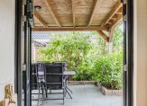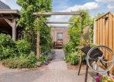 De ruime tuin van ca. 500 m² ligt rondom de woning en beschikt over meerdere terrassen. De hoofdtuin is op het oosten gelegen, voorzien van een mooie overkapping en bereikbaar via een achterom. Hoewel er momenteel geen garage is, is er wel voldoende ruimte om er een te realiseren. Aan de zijkant van het huis is een eigen oprit met plek voor meerdere auto’s.