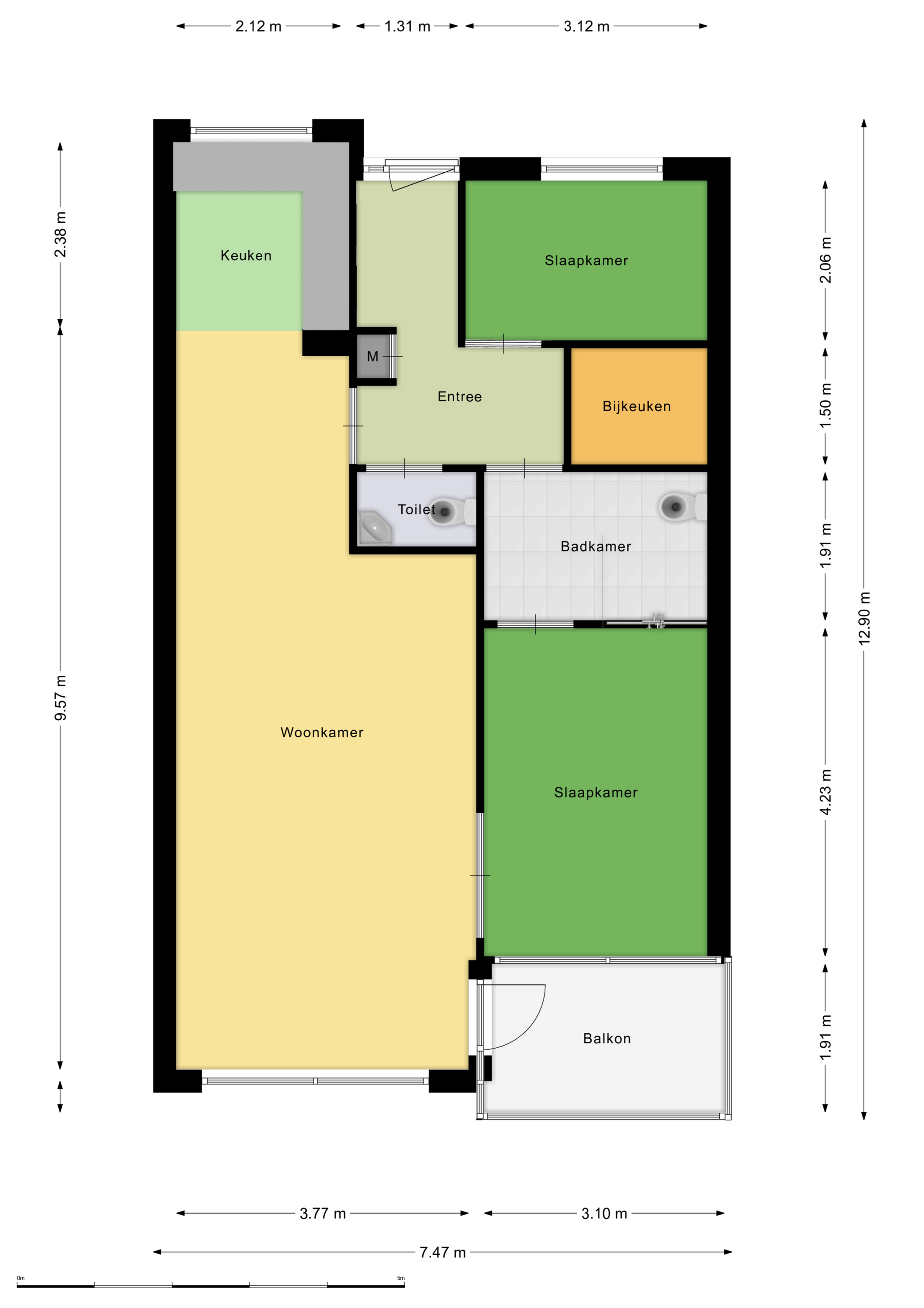 Binnen treft u een gelijkvloerse, in-alles-voorzienende woonruimte. De ruime woonkamer met moderne open keuken (inclusief inductiekookplaat) is perfect om het leven comfortabel in te richten. Twee slaapkamers, een technische/wasruimte, separaat toilet en een badkamer die zowel via de hal als de hoofdslaapkamer te bereiken is, maken het plaatje compleet. Vanuit de woonkamer en de hoofdslaapkamer loopt u zo het zonnige balkon op: ’s ochtends uw koffie in het zonnetje, ’s middags een gezellig praatje met de buren op de galerij.