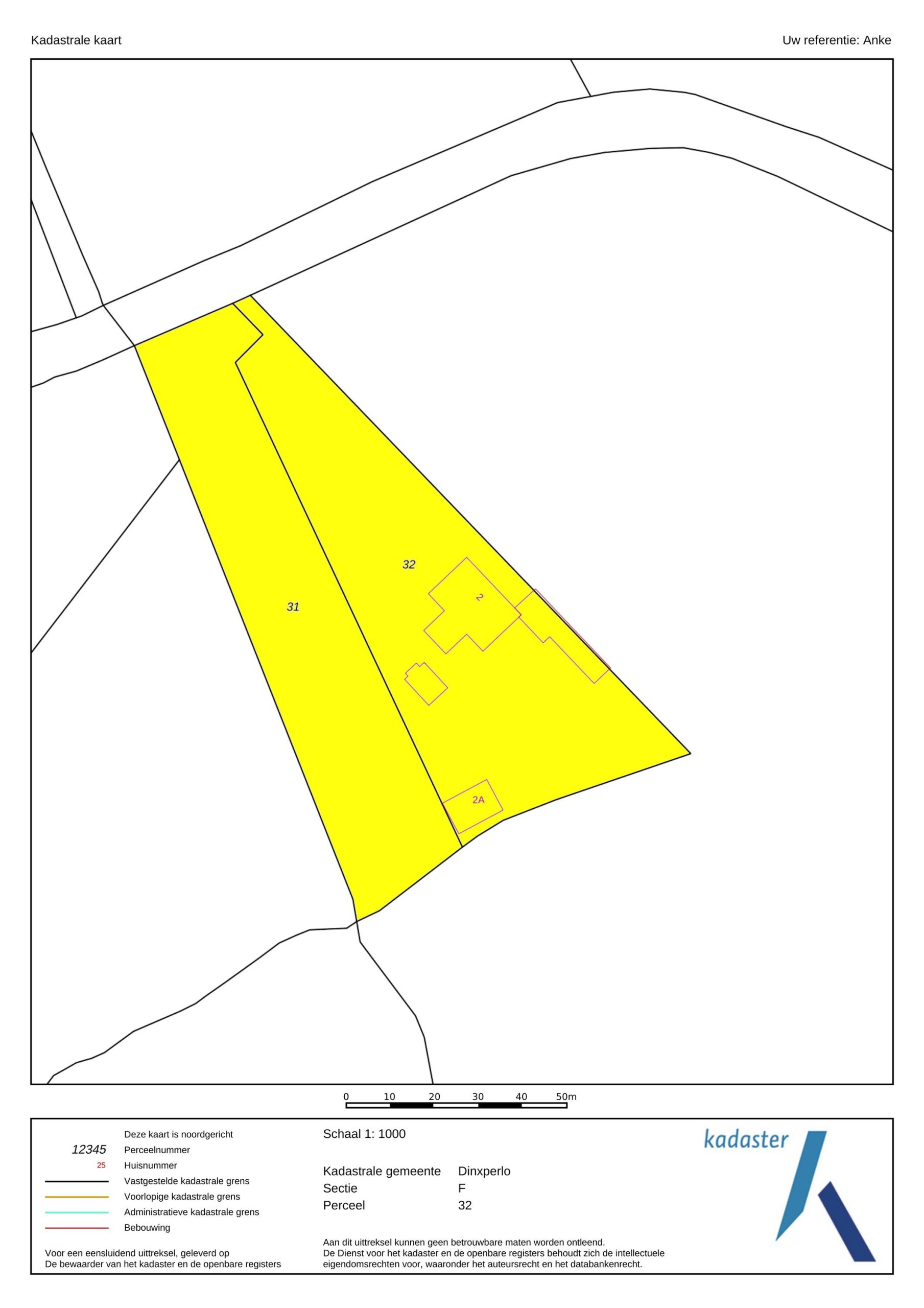 Kadastraal perceelnr. 31 heeft de bestemming agrarisch.