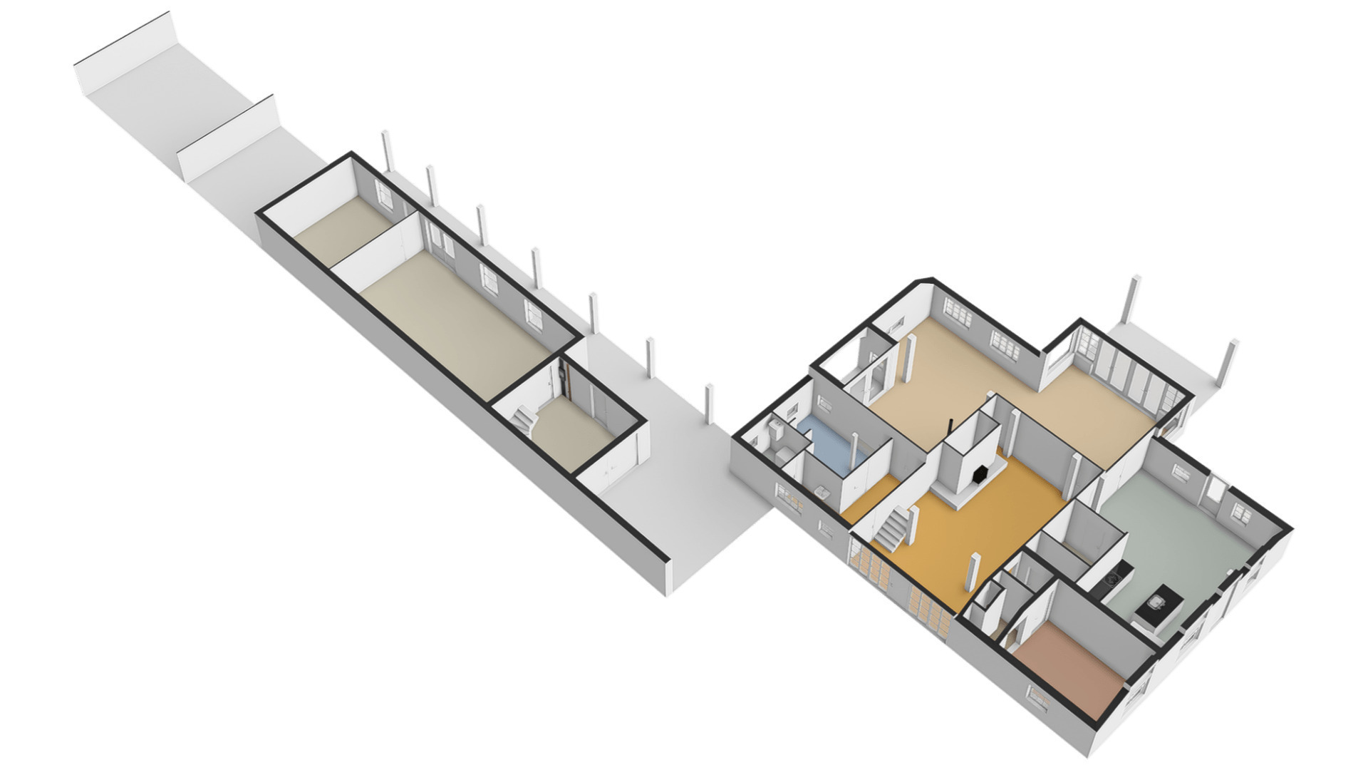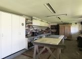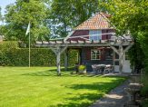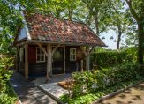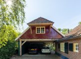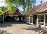 Schuin achter de woonboerderij, aan het einde van de oprit, is een fraaie carport met ruimte voor twee autoâs. In het verlengde van de carport zijn een schuur, ruime werkplaats en een tweede schuur. In de eerste schuur is een vaste trap naar een ruime zolder.