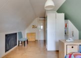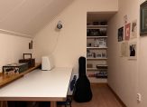 Vanaf de overloop zijn twee royale slaapkamers en een werkkamer/hobbyruimte te bereiken. Ook is er een toilet op deze verdieping, te bereiken vanaf de overloop.Â