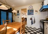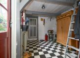 Binnenstappen is teruggaan in de tijd. De woonkamer bevindt zich aan de voorzijde en ademt sfeer met de ouderwetse open haard en de zichtbare balken in het plafond. Ramen rondom zorgen voor een overvloed aan daglicht en een knusse ambiance. Via een charmant afstapje bereik je de ruime eetkeuken aan de achterzijde van de woning. Achter de keuken vind je de praktische bijkeuken met berging én toegang tot de zolder via een vlizotrap.