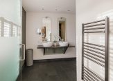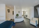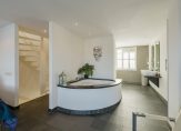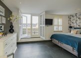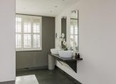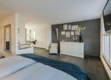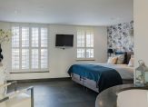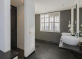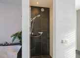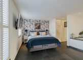 Overloop, moderne toiletruimte met wandcloset en fontein, een zeer grote luxe slaapkamer met aangrenzende fraaie badkamer met duobad, inloopdouche, 2 wastafels en toegang tot een royale inloopkast. Deze gehele etage is voorzien van luxe antraciet tegelvloer met vloerverwarming, gestuukt plafond en gestuukte wanden. Verder zijn er dubbele deuren welke toegang geven tot het royale dakterras waar je kunt genieten van de late avondzon. Alle ramen zijn voorzien van prachtige shutters.