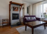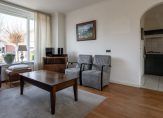 De royale living meet circa 25 m² en is voorzien van een parketvloer. Grote raampartijen zorgen voor volop lichtinval en een fraai zicht op de voorgelegen Pastoor Gloerichstraat.