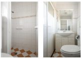 De badkamer is betegeld in moderne kleurstelling en voorzien van een hangend toilet, wastafelmeubel en douchevoorziening. De ventilatie geschiedt op natuurlijke wijze.