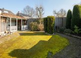 De diepe en verzorgde achtertuin is gesitueerd op het oosten en biedt u volop zon en privacy. De tuin is aangelegd met diverse terrassen, gazon en borders. Aan de zijkant van de woning heeft u de beschikking over een eigen toegang (vanaf het oprit) met afsluitbare poort.