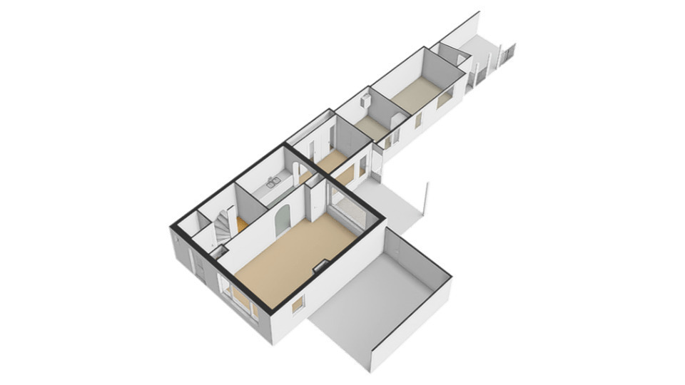 De bijkeuken/berging is voorzien van de aansluitingen voor wasmachine en wasdroger. Ook vinden we hier de opstelplaats van de Cv-ketel.