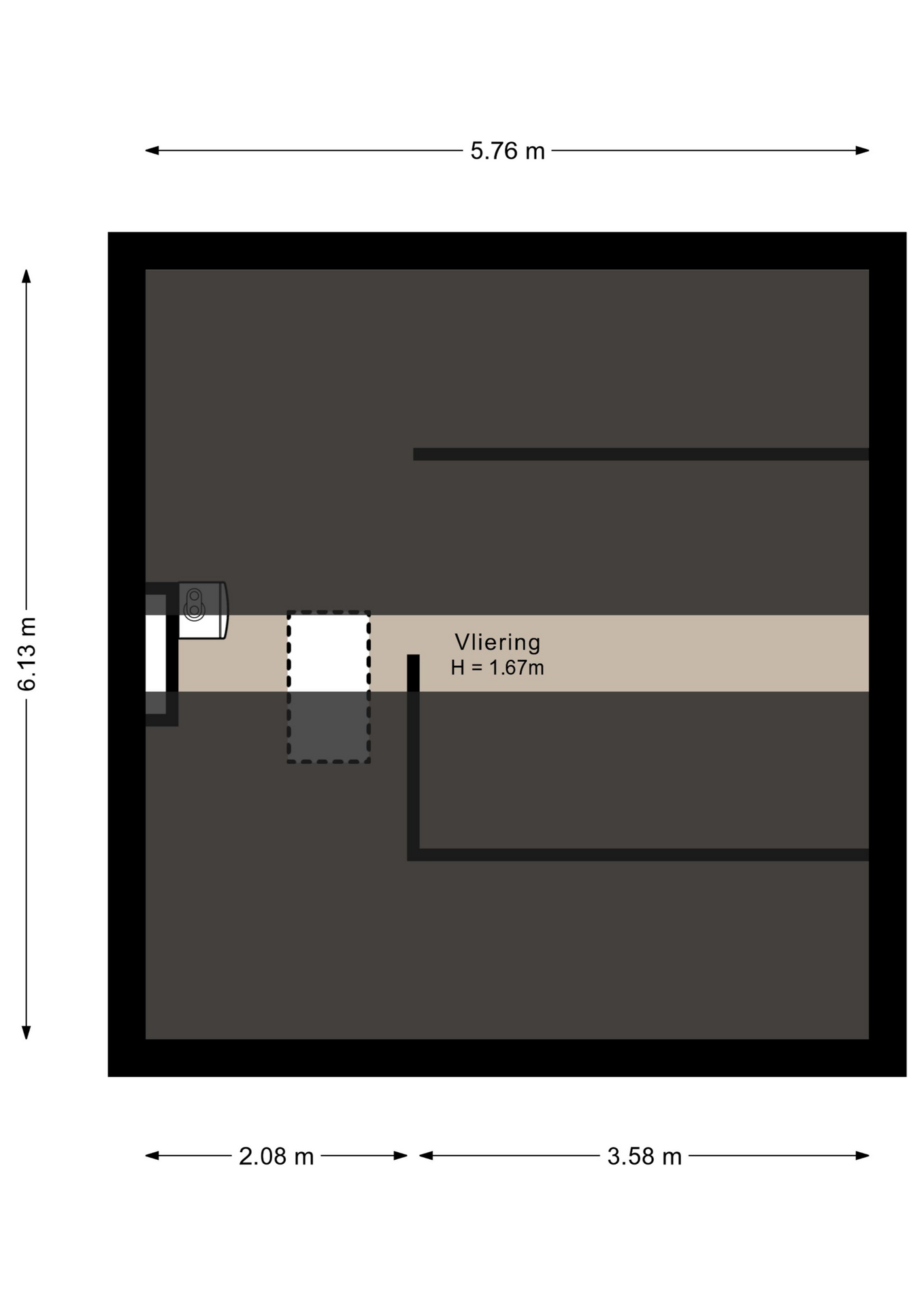Vliering: vlizotrap naar zolderverdieping met Nefit HR-combiketel (eigendom, bj. 2013) en bergruimte.
