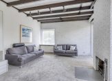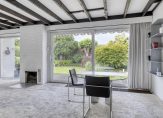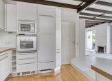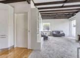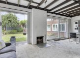 De woon-/eetkamer is een heerlijk lichte leefruimte, met grote ramen aan de zuid- en westkant. Bij het eetgedeelte is een schuifpui naar het terras en het balkenplafond zorgt, samen met de open haard, voor een leefruimte met een aangename sfeer.