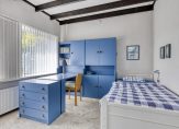 Er zijn maar liefst drie slaapkamers, één aan de voorzijde en twee aan de achterzijde. Eén kamer aan de achterzijde is de master bedroom met een maatwerk kastenwand, wastafelmeubel en een spiegelkast. Een van de slaapkamers, ingericht als werk-/studeerkamer, heeft mooi uitzicht naar de voortuin en vanuit de logeerkamer kijkt u eveneens naar de achtertuin.