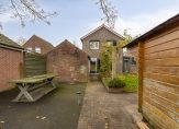 De woning wordt omringd door een ruime tuin met zowel een achtertuin als voortuin. De achtertuin is zuid georiënteerd, waardoor u de hele dag van de zon kunt genieten, maar desgewenst ook in de schaduw van de grote boom! In de tuin vindt u ook een vrijstaande stenen garage met elektriciteit. Deze garage heeft een afmeting van 3,27 x 5,65 meter. Daarnaast is er ook een houten tuinberging.