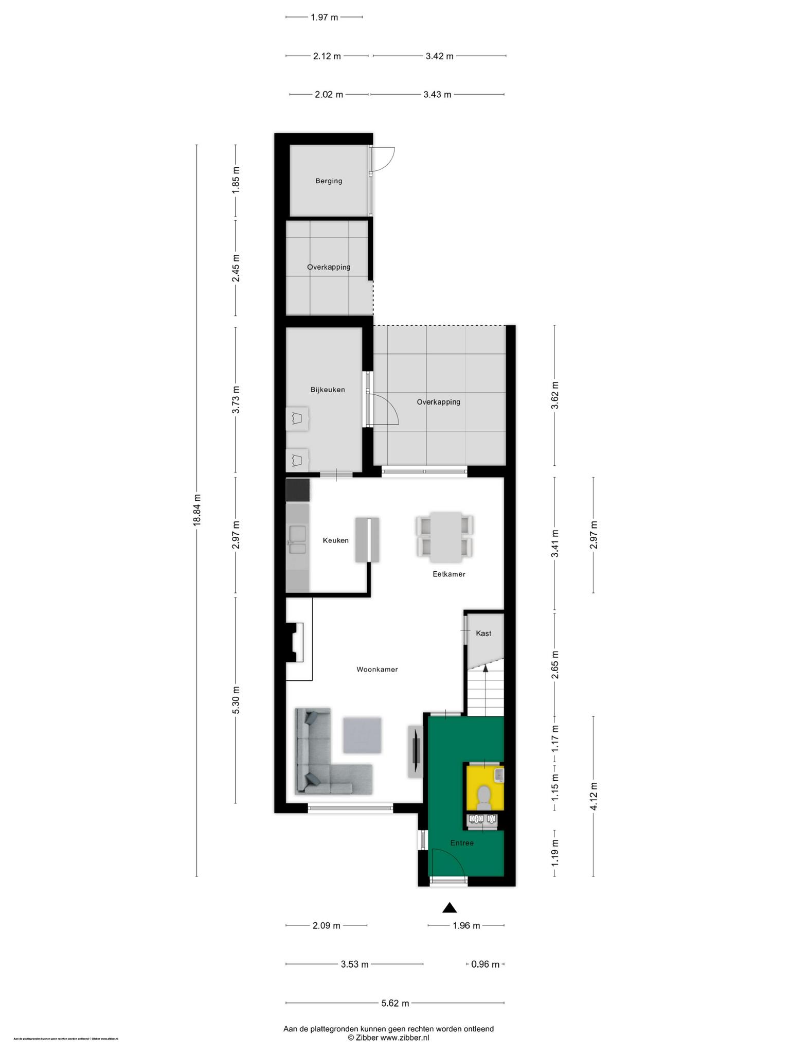 De woning heeft aan de voorzijde een kenmerkende uitbouw waardoor er een royale hal ontstaat waar plek is voor de meterkast, een garderobenis en een toiletruimte. Vervolgens hebben we een ruime woonkamer voorzien van een openhaard met schouw. Dankzij de Z-vormige indeling laat de kamer zich gemakkelijk indelen en is er meer dan voldoende vloeroppervlak. Aan de voorzijde is er plek voor een ruime en comfortabele zithoek. De achterzijde biedt juist plaats aan een riante eettafel, waarbij zicht is op de achtertuin. Extra opbergruimte wordt geboden door de provisiekast onder de trapopgang. De halfopen keuken beschikt over een L-vormig keukenblok met lichtgekleurde frontpanelen. Aangrenzend ligt een ruime bijkeuken annex berging, waar ook de witgoedaansluitingen bevinden. Daarnaast biedt dit vertrek toegang tot de achtertuin dan wel wordt het gebruikt als achterentree.