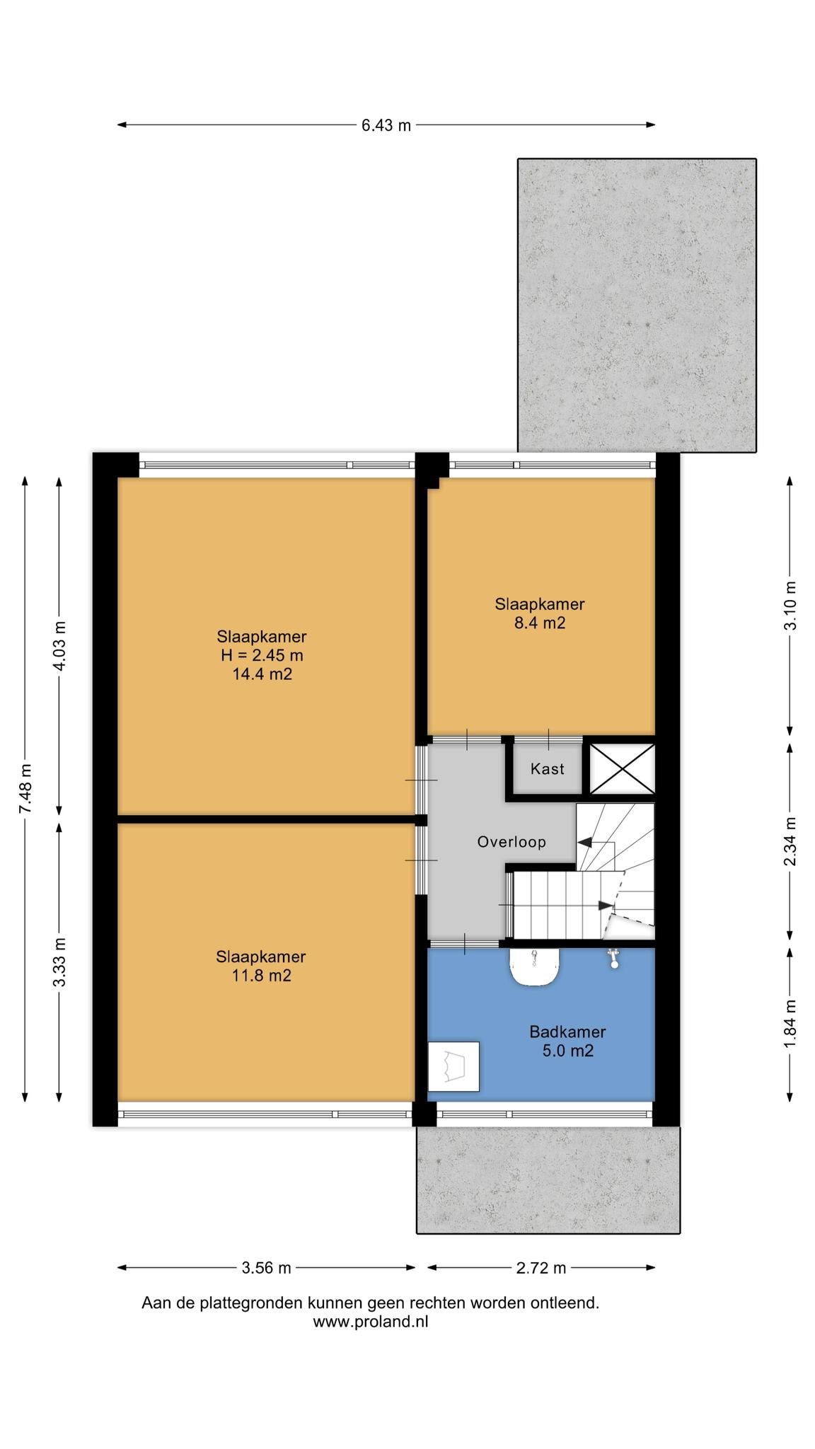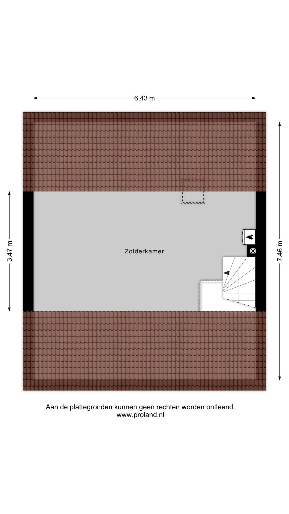 Middels vaste trap bereikbare zolder met de mogelijkheid voor extra kamers.