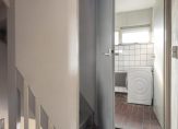Overloop met toegang tot de drie slaapkamers, eenvoudige badkamer voorzien van douche en wastafel,