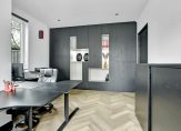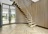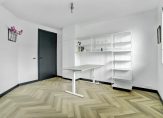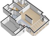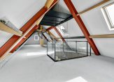 De hal is een echte binnenkomer. Bij binnenkomst valt direct de indrukwekkende open trap op, met een prachtig zicht tot aan de nok van het dak, een ruimte vol met natuurlijk licht. Vanuit de hal bereikt u een toiletruimte en een multifunctionele kantoorruimte. Deze kantoorruimte is volledig voorzien van op maat gemaakte inbouwkasten en biedt de mogelijkheid om eenvoudig te transformeren tot extra slaapkamer met eigen douche. De benodigde water- en afvoeraansluitingen zijn al aanwezig.