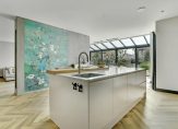 Via dubbele deuren betreedt u vanuit de hal de ruime woonkamer. De woonkamer is voorzien van een stijlvolle elektrische haard, welke is verwerkt in een sfeervolle roomdivider, die zorgt voor een gezellige scheiding tussen de woonkamer en de leefkeuken. Zodra u de woonkamer betreedt, valt de kamerbrede serre direct op. De serre is voorzien van een grote schuifpui en geeft u zicht op de mooi verzorgde achtertuin. De moderne open keuken is een droom voor kookliefhebbers. De keuken is grotendeels voorzien van Miele inbouwapparatuur met o.a. een Quooker, vaatwasser, heteluchtoven, koffieautomaat, warmhoudlade, stoomoven, twee ruime koelkasten en een inductiekookplaat. Een pelletkachel geeft de keuken extra sfeer en warmte.