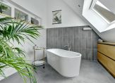 De overloop geeft toegang tot 5 slaapkamers, een modern afgewerkte kleedkamer, een luxueuze badkamer, een aparte toiletruimte en een multifunctionele wasruimte met de aansluitingen voor de wasapparatuur. Een van de slaapkamers aan de achterzijde is voorzien van een dakterras. De badkamer voelt aan als een privé-spa met een doordachte indeling en rustgevende uitstraling. De badkamer is voorzien van een vrijstaand ligbad, een zeer ruime inloopdouche, drie wastafels met een bijbehorend meubel en een toilet.