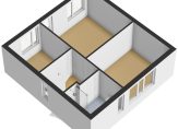 Slaapkamer II is circa 3,60 x 3,73 m. Deze slaapkamer bevindt zich aan de voorzijde van de woning en is voorzien van een Frans balkon;