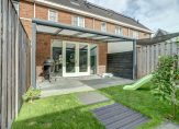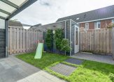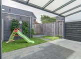 De achtertuin is een fijne plek om te ontspannen. Direct aan het huis bevindt zich een gezellige overkapping, ideaal om het hele jaar door buiten te zitten. Achterin de tuin staat een praktische berging van circa 6 m², perfect voor fietsen, tuingereedschap of extra opslag. De tuin is verder ingericht met gazon en sierbestrating, waardoor er een mooie balans is tussen groen en onderhoudsvriendelijk.