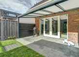 – Een zonnige achtertuin met een overkapping, een fijne plek om te ontspannen;