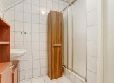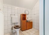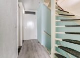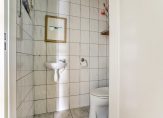 Vanuit de woonkamer bereikt u het tussenportaal, dat is uitgerust met een toiletruimte en een praktische vaste kast. Tevens vindt u hier de trap naar de 2e verdieping.