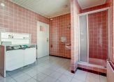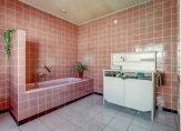 De overloop geeft toegang tot de woonkamer, welke aan de achterzijde van de woning is gesitueerd. Via hier krijgt u toegang tot een slaap-/werkkamer van circa 3,34 x 2,37 m. Aan de voorzijde van de woning bevindt zich een hal met twee vaste kasten en toegang tot de overige slaapkamers en de badkamer. Stap binnen in deze unieke badkamer en laat je verrassen door een vleugje nostalgie. Met zijn zachtroze tegels en vintage uitstraling is dit een echte eye-catcher voor liefhebbers van karakter en charme. De badkamer is voorzien van een douche, ligbad, toilet en een wastafel. Met een royale afmeting van ca. 3,92 x 3,02 meter biedt deze badkamer natuurlijk ook volop mogelijkheden voor een luxe upgrade.