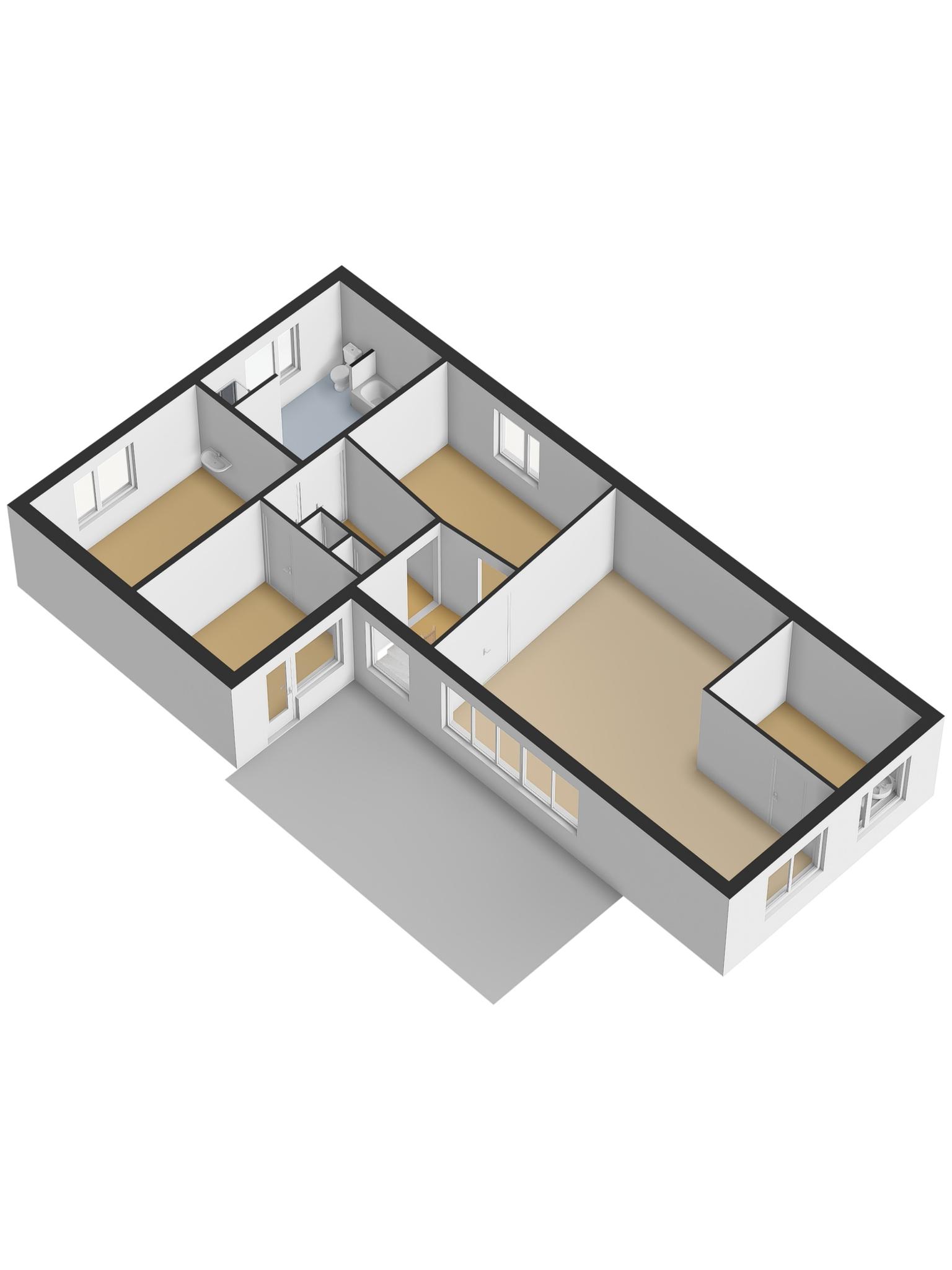 Slaapkamer III is circa 2,80 x 3,30 m en bevindt zich aan de rechterkant de woning;