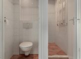Indeling: entree met intercom, ruime hal; toilet; slaapkamer voorzijde van circa 6 m2 met vaste kast en balkondeur; doucheruimte met douchehoek. De 2e slaapkamer is circa 11 m² groot en heeft een wastafelmeubel.