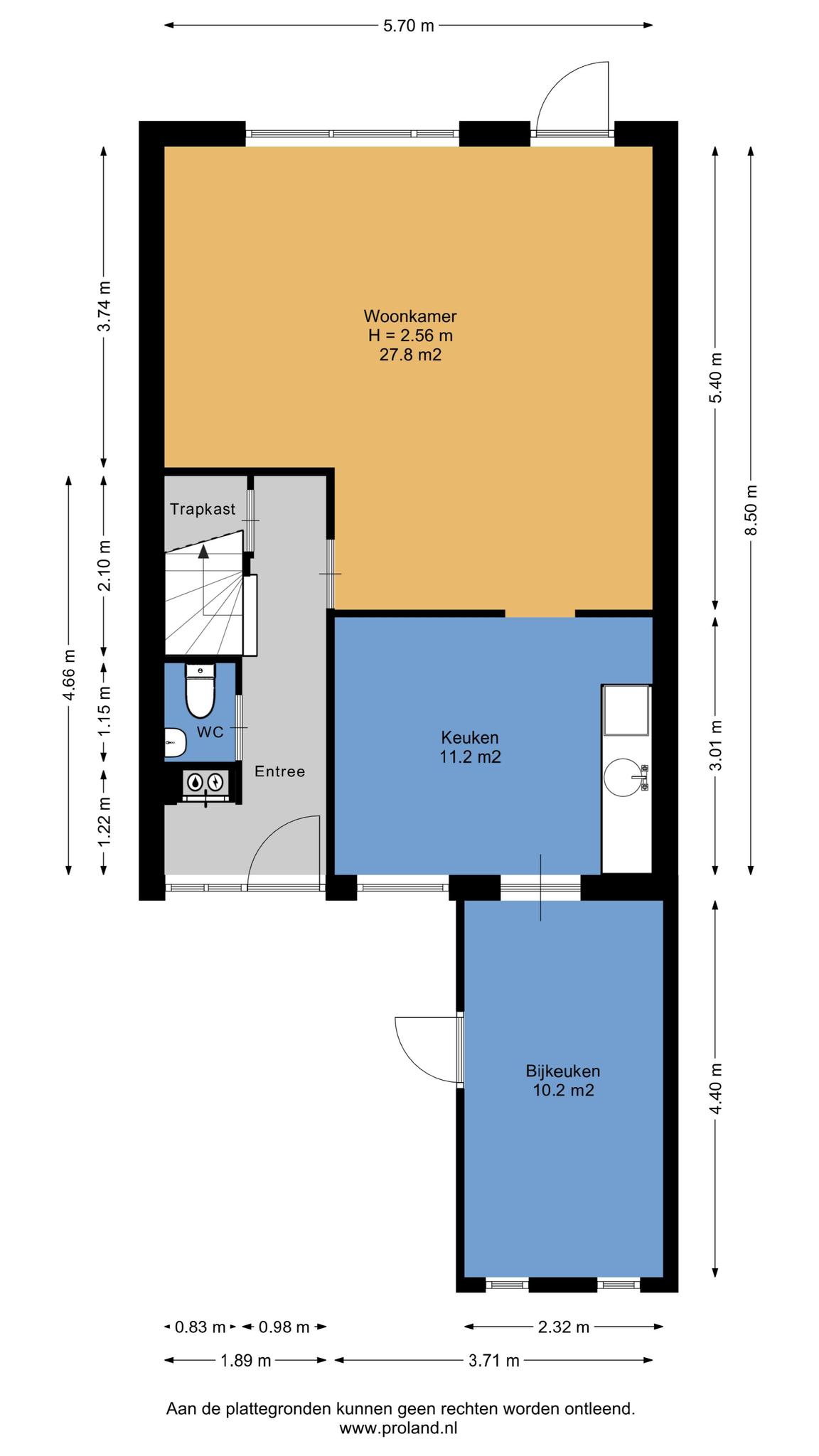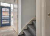 entree, hal met meterkast, toilet, trapgang naar de verdieping, trapkast, woonkamer met tuindeur, woonkeuken met doorgang naar de bijkeuken/berging met buitendeur
