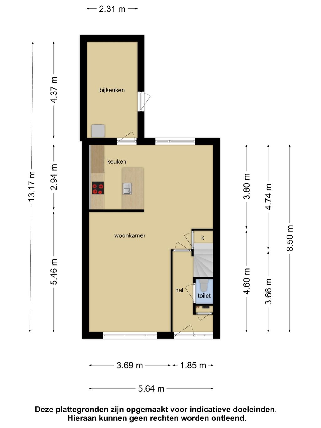 Via de entree kom je in de hal met het toilet, de meterkast en de trapopgang met onder de trap een handige bergkast welke bereikbaar is vanuit de woonkamer.