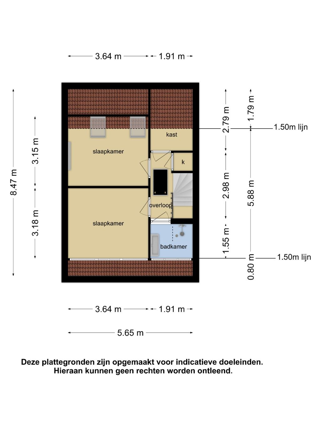 Deze ruimte is met een vlizotrap te bereiken en biedt veel bergruimte. De mogelijkheid om een vaste trap te plaatsen is aanwezig en dan biedt deze verdieping de mogelijkheid voor een extra slaapkamer of een kantoor-/werkruimte.