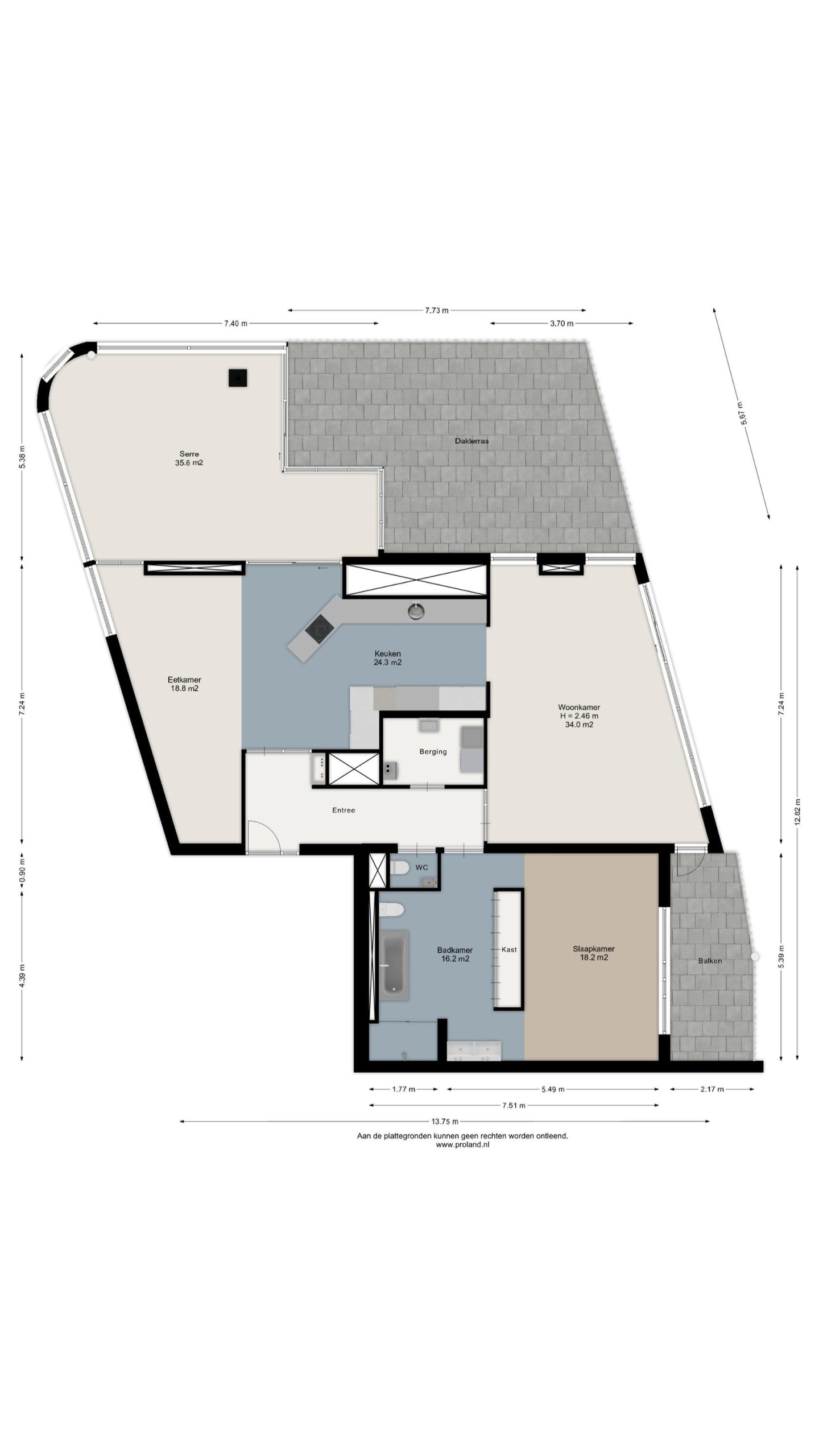 – Dakterras van circa 65m2