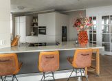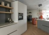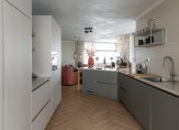 Er is een apart woon- en eetgedeelte met daartussen de ruime en moderne open keuken welke is voorzien van de nodige inbouwapparatuur: o.a. quooker, vaatwasser, combi-oven-magnetron.