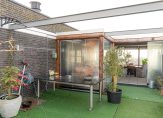 Een deel van het dakterras is voorzien van overkapping zodat het terras het gehele jaar door een fijne ruime is om te verblijven.