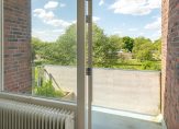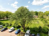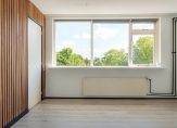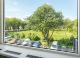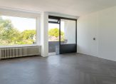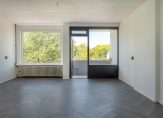 Lichte woonkamer met toegang tot een balkon met vrij uitzicht op het groen