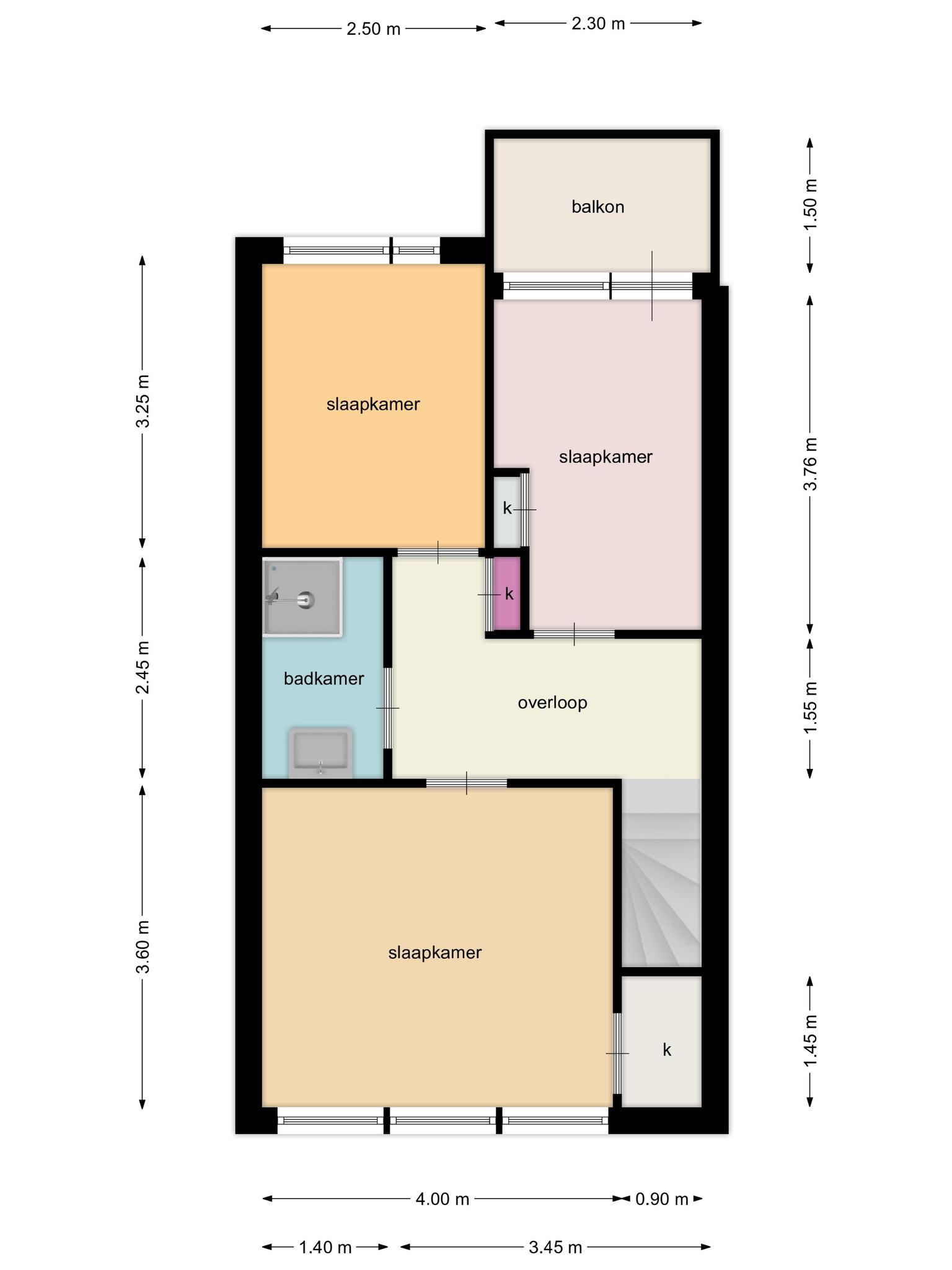 Twee extra slaapkamers aan de voorzijde, waarvan één met balkon en vaste kast