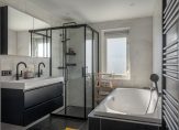 Ruime overloop met toegang tot drie slaapkamers van goed formaat. De badkamer is in 2023 volledig gemoderniseerd en beschikt over een ligbad, aparte douche, dubbele wastafel en tweede toilet.